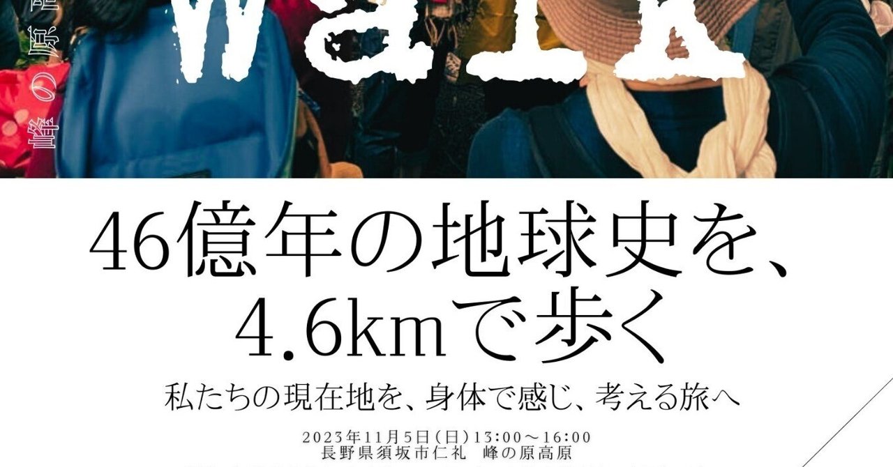 46億年の地球の歴史を、4.6km(100m=1億)として歩く、Deep Time Walk。イギリスで開発されたこのワークショップは、地球の歴史を辿ることで、生態系の一部としてある私達の現在地を体感し、捉えなおし、共に考える場です。