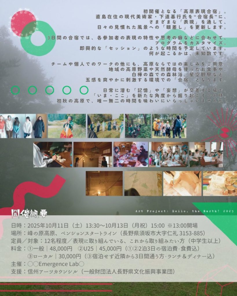 日常に潜む「記憶」や「妄想」が交差する場で、「いま・ここ」を新たな角度から掘り起こすひと時。初秋の高原で、唯一無二の時間を味わいにいらっしゃいませんか?
