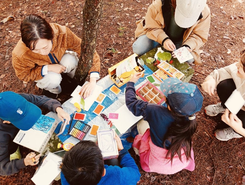 教育に関するプログラムについては、「前編」で書いた「対話鑑賞ワークショップ」の学校出張なども含まれるのですが、特に「森ラボ」は連続企画として、2024年から2年間市内の親子と豊かな場を作らせていただきました。(来年度も継続予定です。)